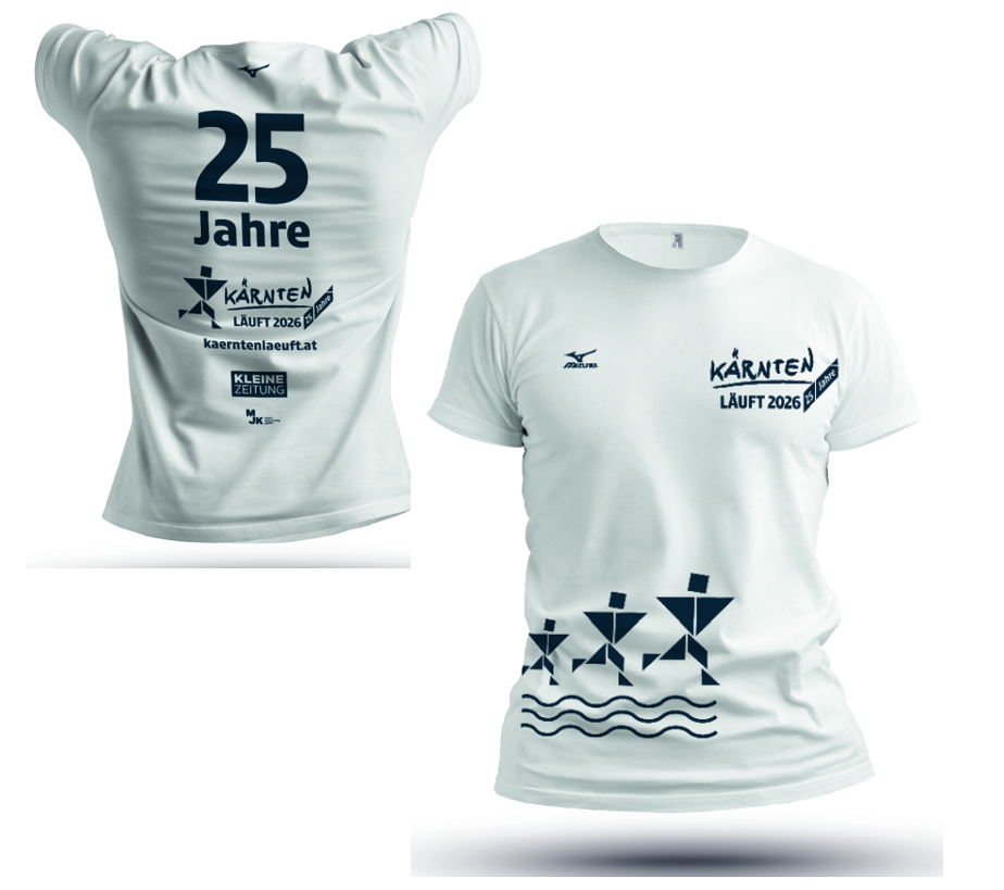 Mit dem Funktions Running Shirt von Mizuno im „25 Jahre Kärnten Läuft“-Design ist der perfekte Tragekomfort für Frauen und Männer garantiert.